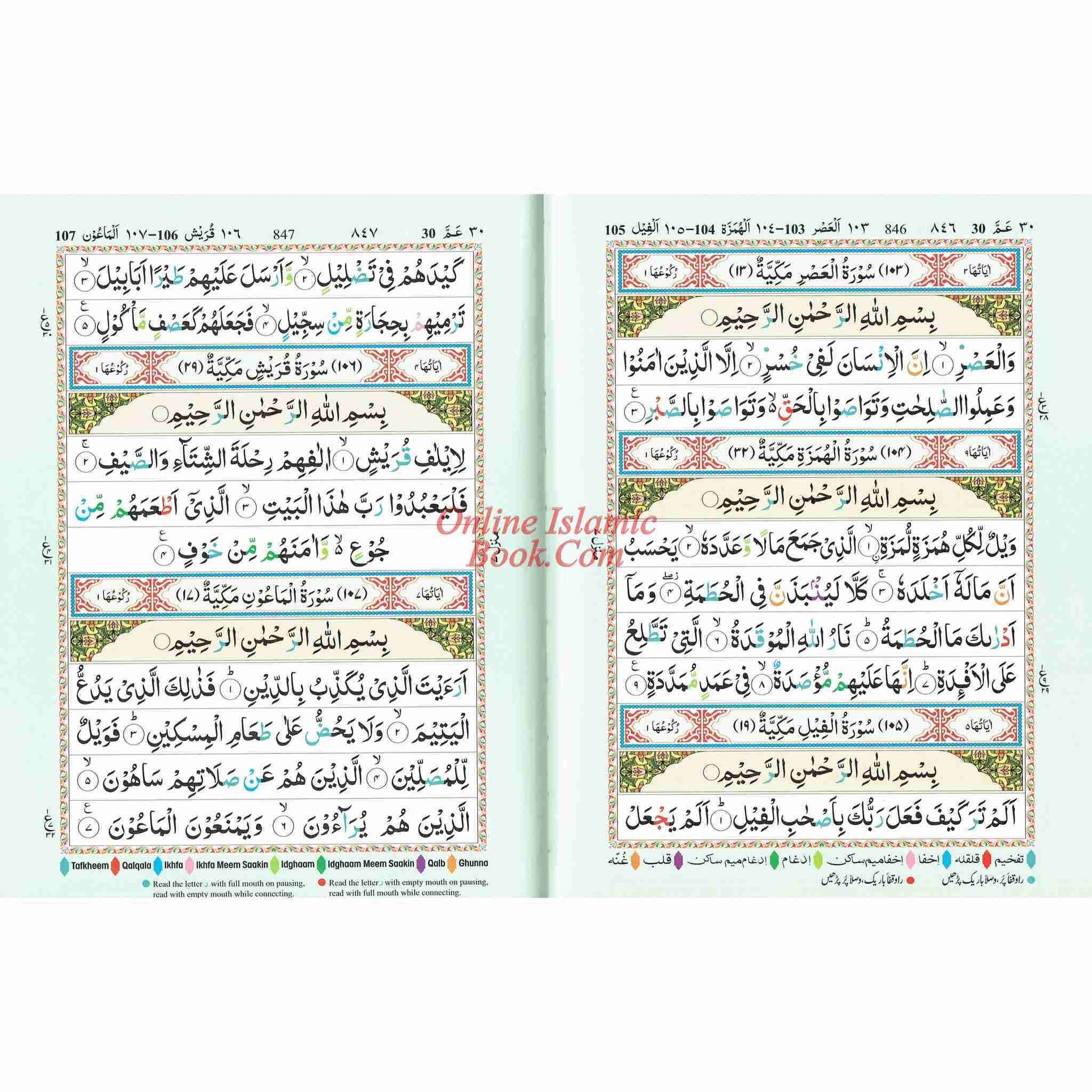 The Holy Quran Colour Coded Tajweed Rules with Colour Coded Manzils (Large Size) With Case,Ref 3-CC