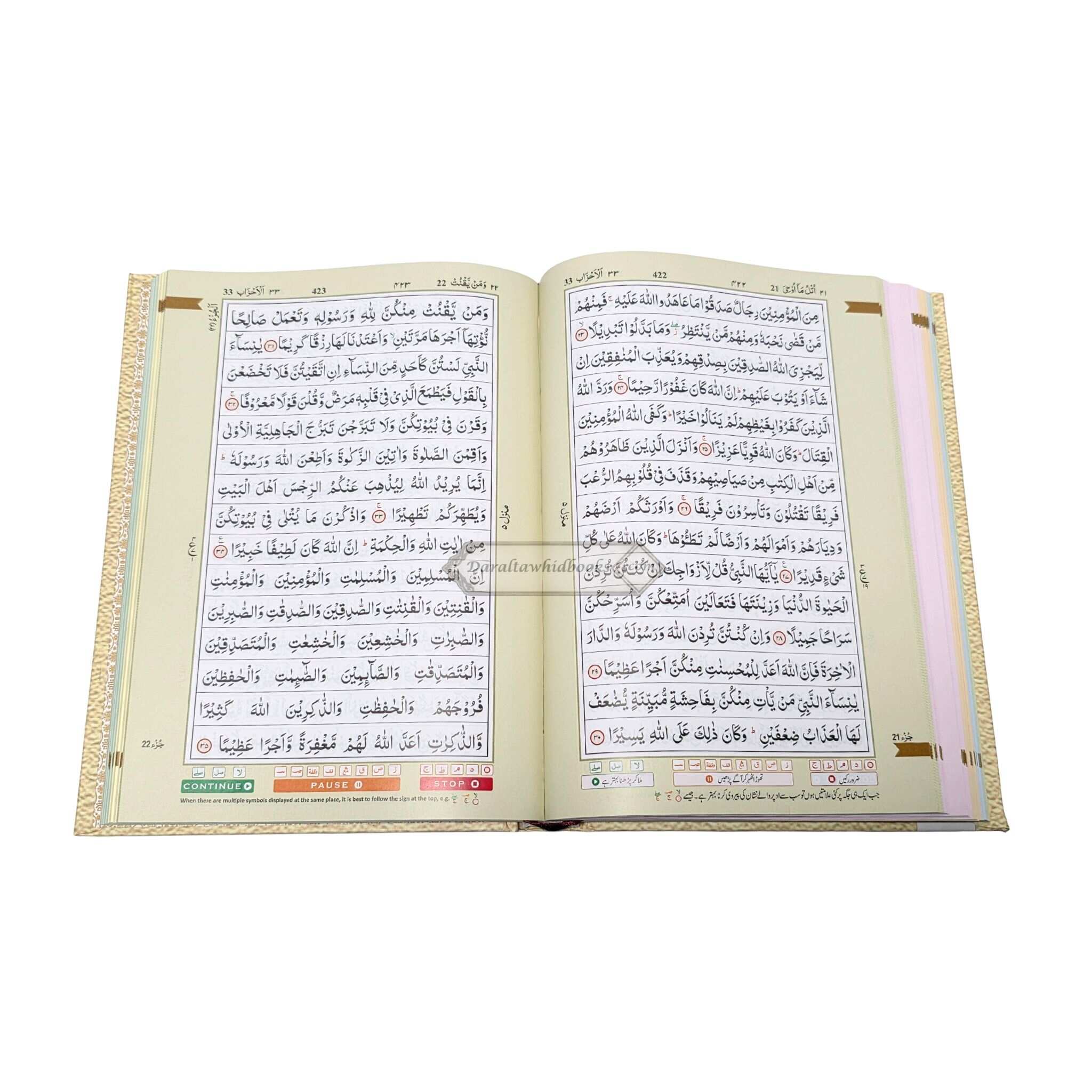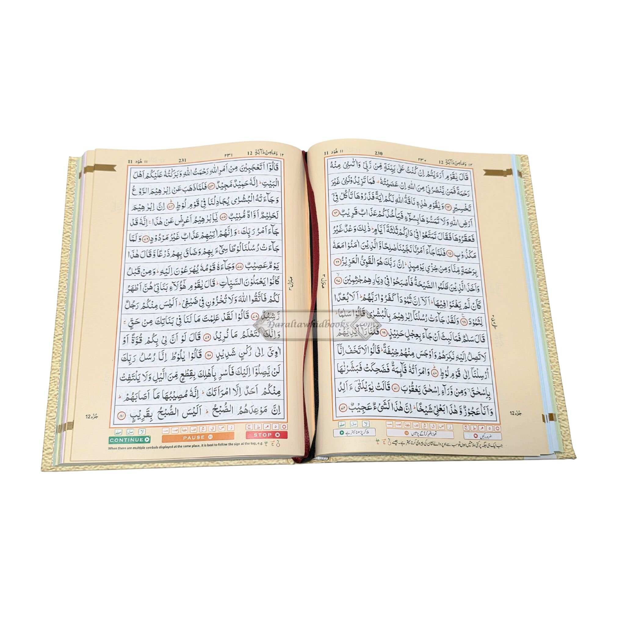 Discover the Holy Quran with Waqf Rules (Ref 126), designed to guide readers toward accurate recitation and understanding. This edition highlights the essential Waqf (stopping and pausing) rules, helping you improve fluency, rhythm, and comprehension while reciting the Qur'an. Printed on high-quality paper with a clear script, it ensures ease of reading for both beginners and advanced students. With its durable hardcover binding, this Qur'an is perfect for daily use, study, and memorization. An excellent choice for those seeking to enhance their tajweed and strengthen their connection with the words of Allah.