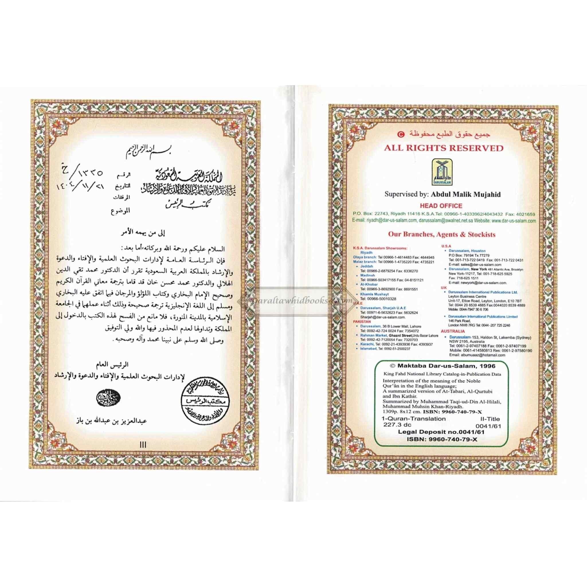 Author: Dr. Muhsin Khan & Dr. Taqi-ud-Din Al-Hilali