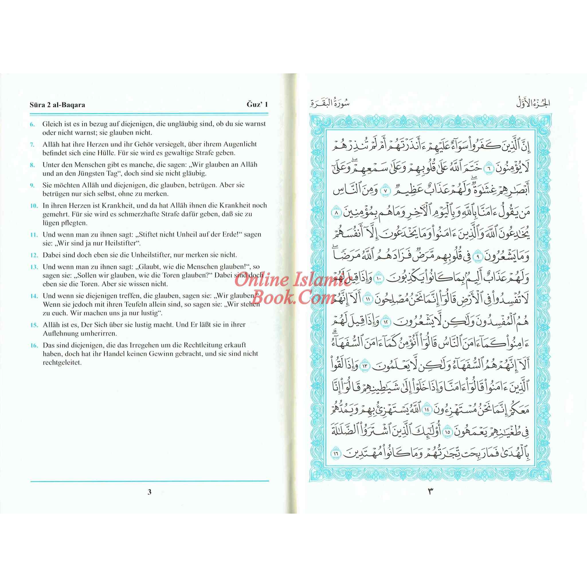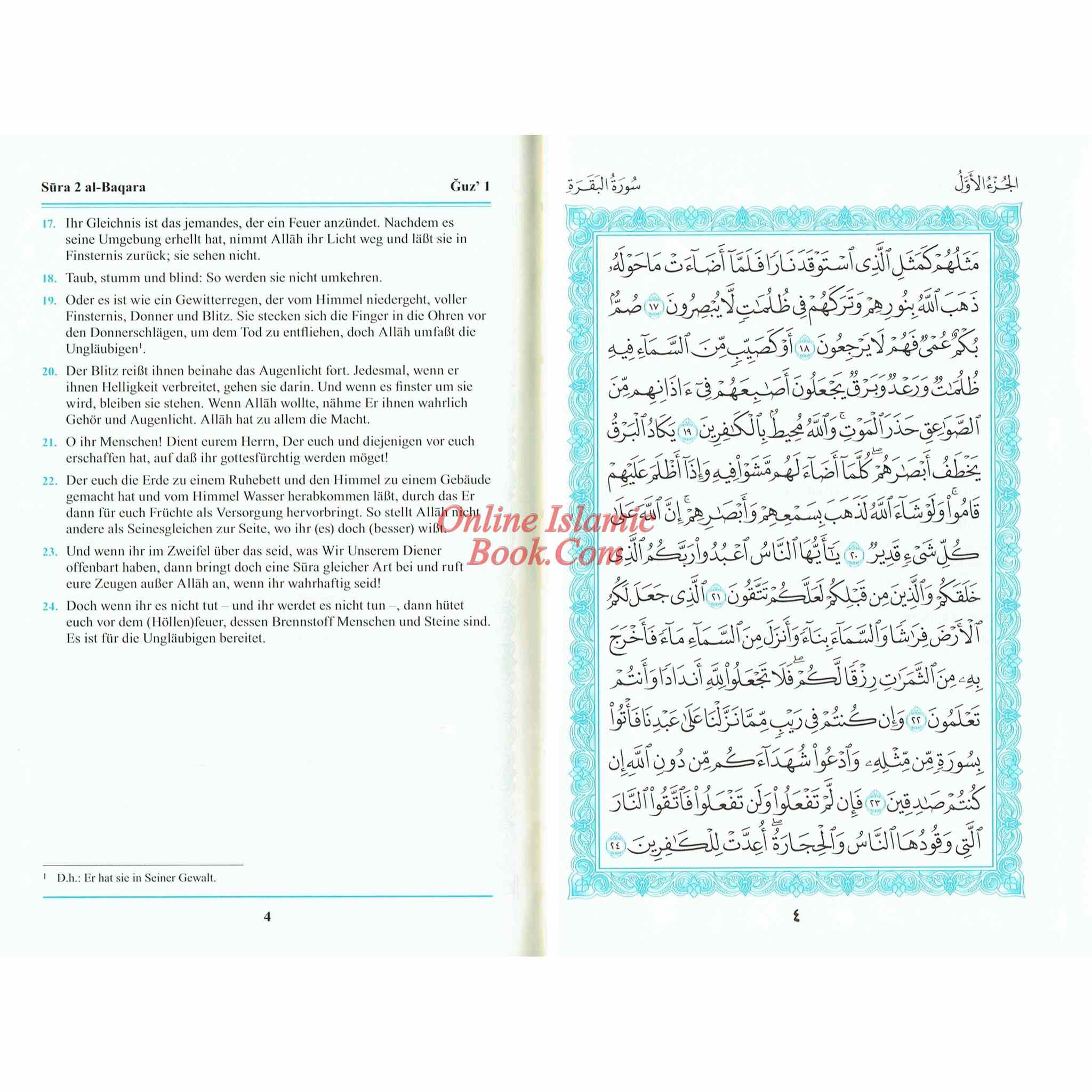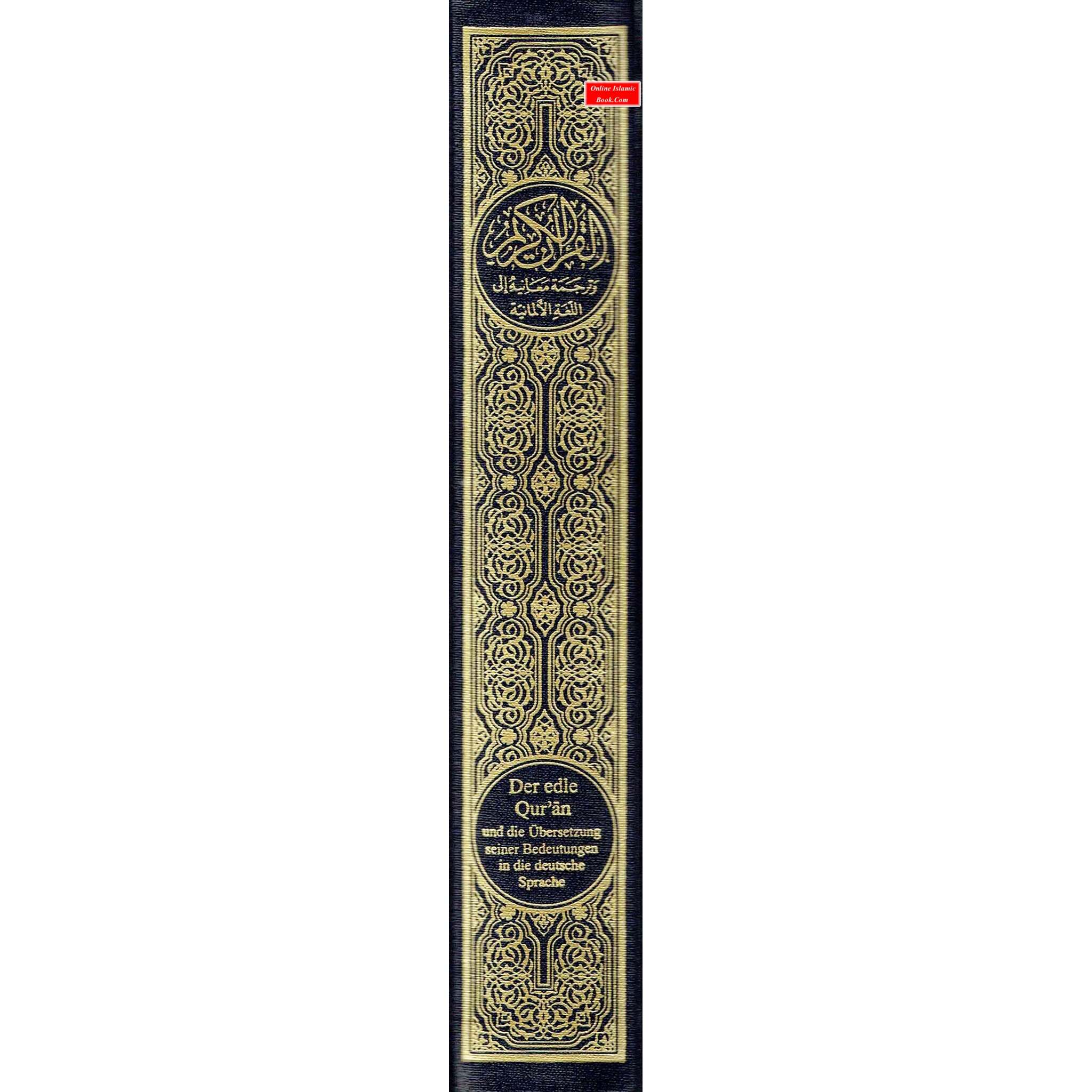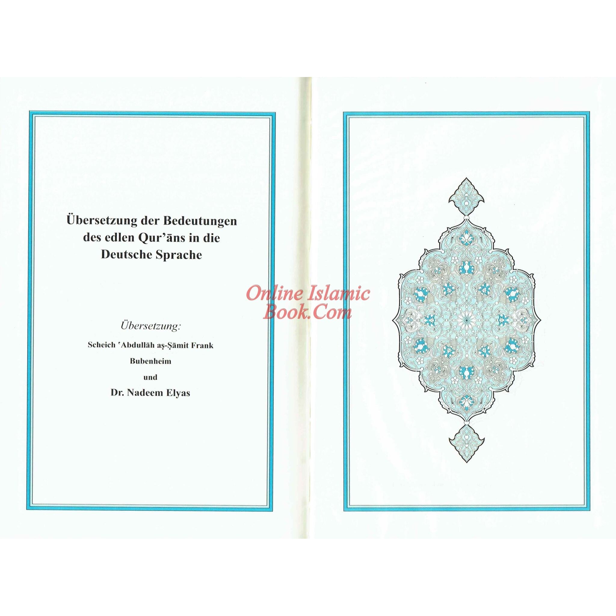 "The Noble Quran" in German (Deutsch Sprache), published by the King Fahad Complex in Medina, is a well-known volume of the Quran translated exclusively for German-speaking audiences. The King Fahad Complex for the Printing of the Holy Quran is a recognized institution dedicated to producing accurate and dependable translations of the Quran in a variety of languages. This edition comes with German translations for the german speaking people to read the Quran easily to understand it and connect with it and learn Quran's message in their own language. The translation seeks to represent the contents and teachings of the original Arabic text while accounting for linguistic quirks and cultural context in German.Die Übersetzung des Qur´ans von Dr. Nadeem Elyas und Frank Bubenheim wurde als bisher einzige Übersetzung in den 1980er durch das saudische Religionsministerium in Auftrag gegeben und beglaubigt. Zugleich wird diese Übersetzung direkt in der für Muslime aller Welt heiligen Stadt Medina von der berühmten König Fahd Qur´an Druckerei verlegt. Seither gilt sie durch ihre konsequente Nähe zum arabischen Originaltext und gerade wegen der ausführlichen Kommentierung mit Übersetzungsalternativen, ohne dabei Einbußen bei der Lesbarkeit einstreichen zu müssen, als die bewährteste Übersetzung im gesamten deutschsprachigen Raum. Textlich ist diese Ausgabe multilingual aufgebaut, soll bedeuten, der arabische Originaltext wird jeweils auf der rechten Seite gezeigt, während selbiger Text parallel auf der linken Seite ins Deutsche übersetzt wird.