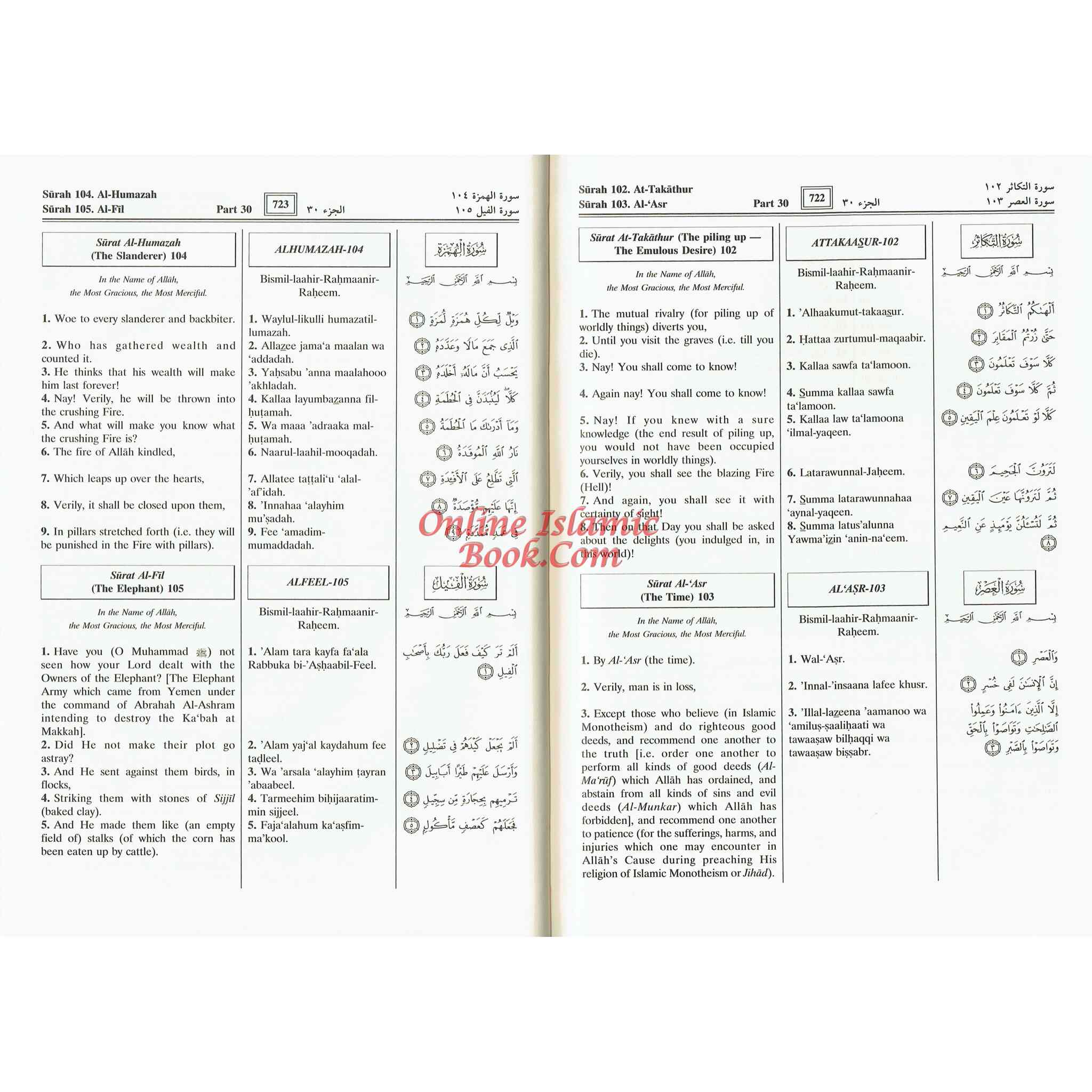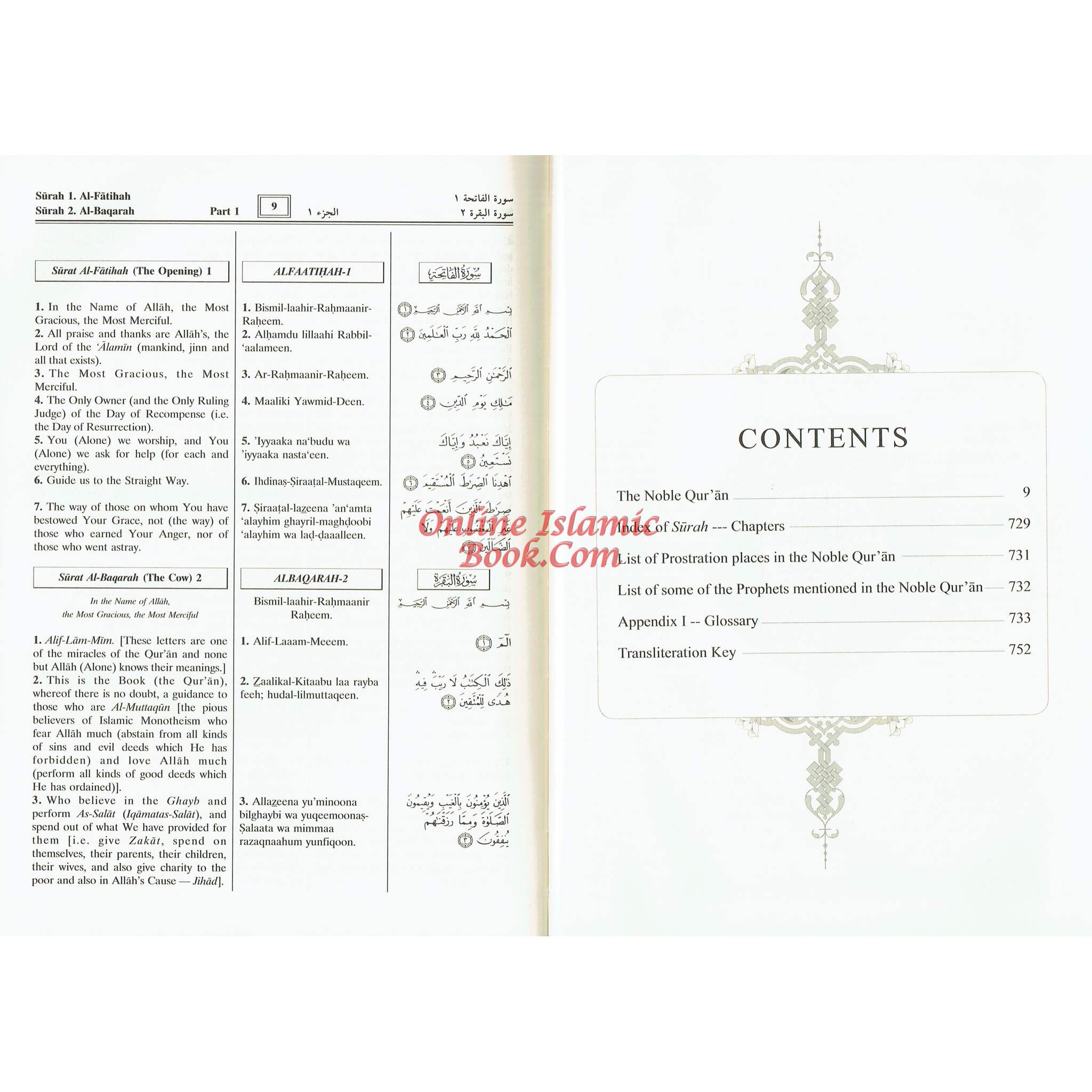 5. One more column is added in this particular edition of the interpretation of the meanings of the Noble Qur'an, providing the readers the transliteration of the Arabic Verses along with their translation. It is hoped that the readers will be able to recite the Noble Verses in more correct way taking the help of transliteration.
